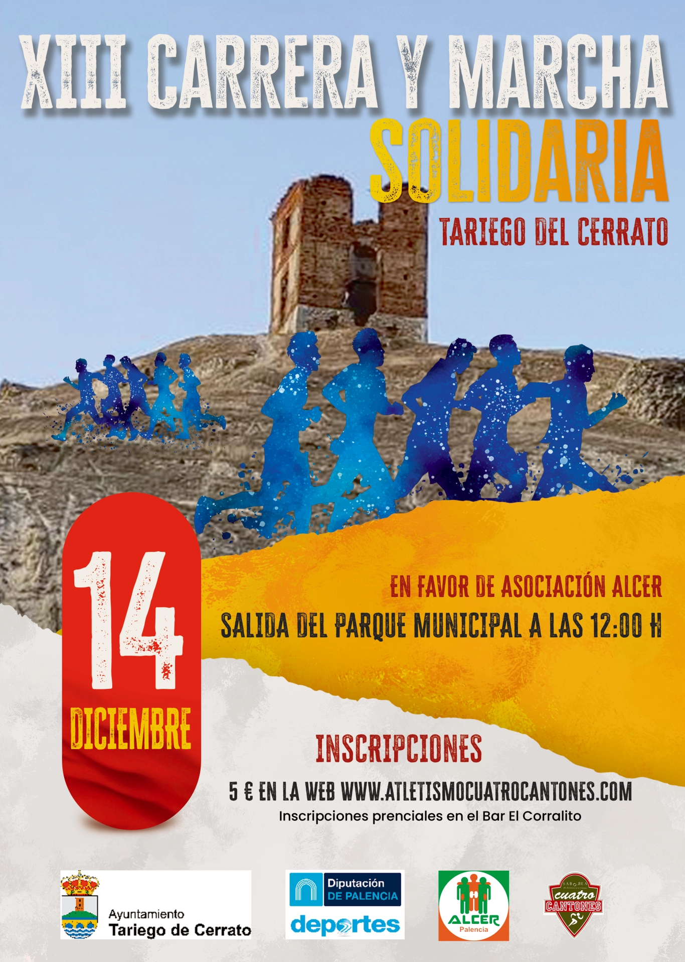 El próximo domingo 14 de diciembre, será la carrera solidaria en Tariego de Cerrato, en favor de ALCER PALENCIA. Además habrá un mercadillo solidario y bocadillos, para afrontar "a tope" la carrera.