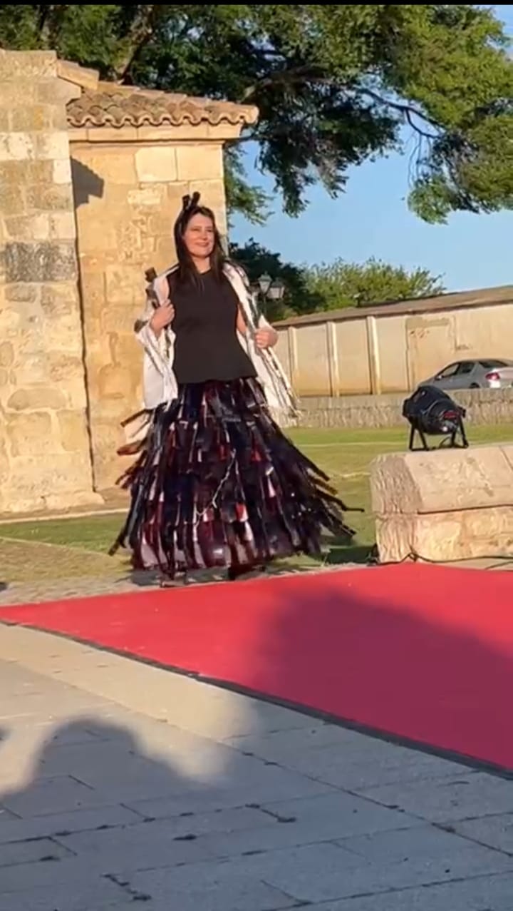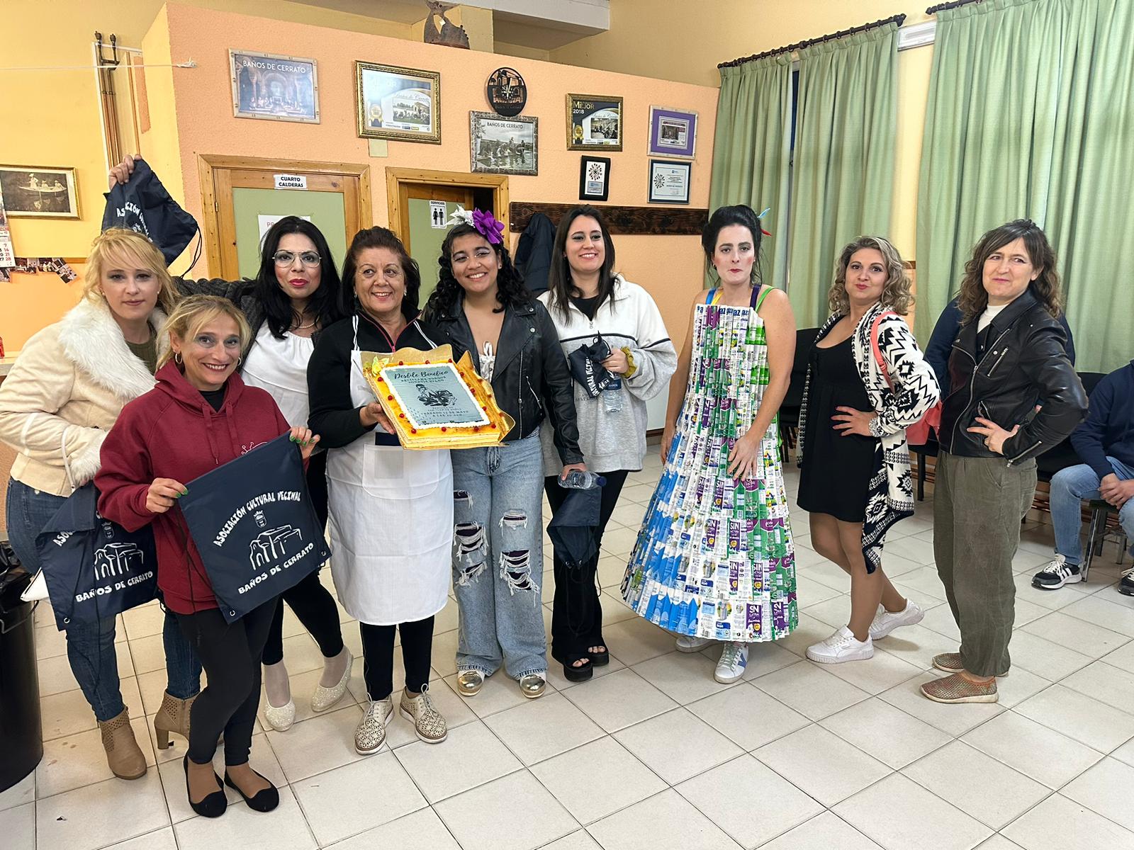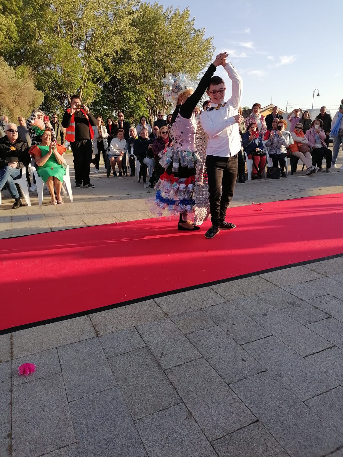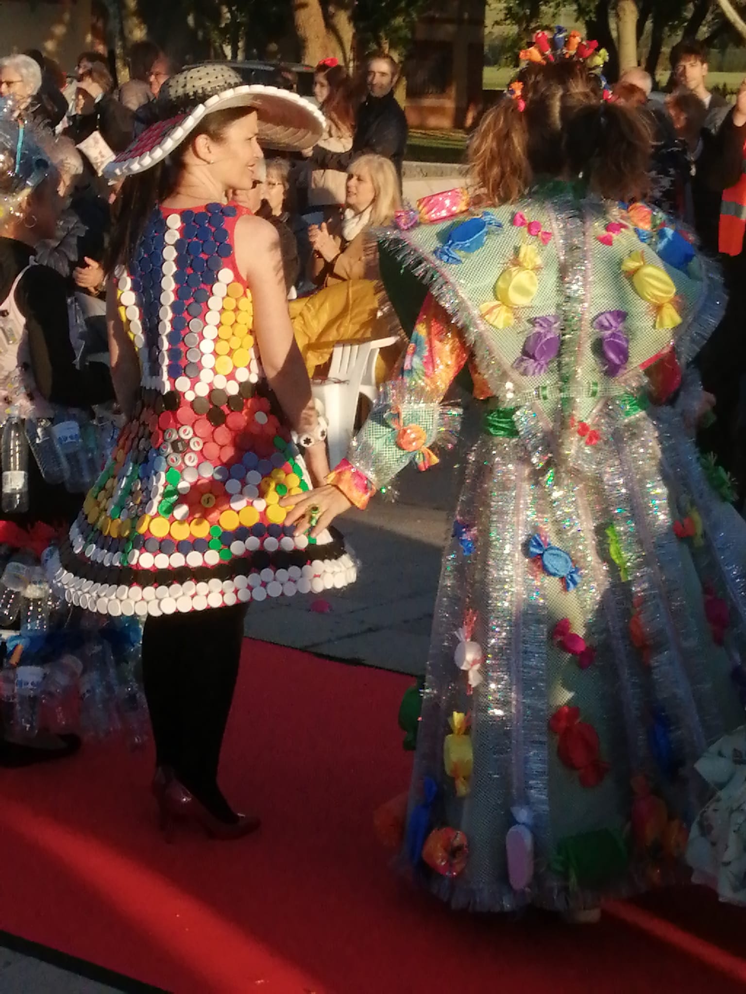 Encabezó la pasarela nuestra Sra Presidenta Inmaculada Gutiérrez. Vestía un traje elegante con los colores corporativos de ALCER, recordando a los presentes los fines solidarios de nuestra asociación, e invitando a la donación de órganos. A continuación el resto de modelos, con mucha gracia, elegancia y belleza arrancaron la admiración, las palmas e incluso sonrisas de todos los presentes. Desde cartones de leche con paraguas chino del mismo material, pasando a papel de envolver, corchos e incluso botellas de plástico fueron varios de los materiales de los vestidos.