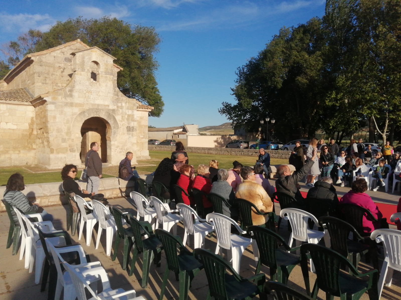 El entorno fue de lujo, la basílica visigoda de San Juan de Baños. Se instaló una pasarela, con alfombra roja. Se acompañó con música, sillas, luces y todos los elementos necesarios.