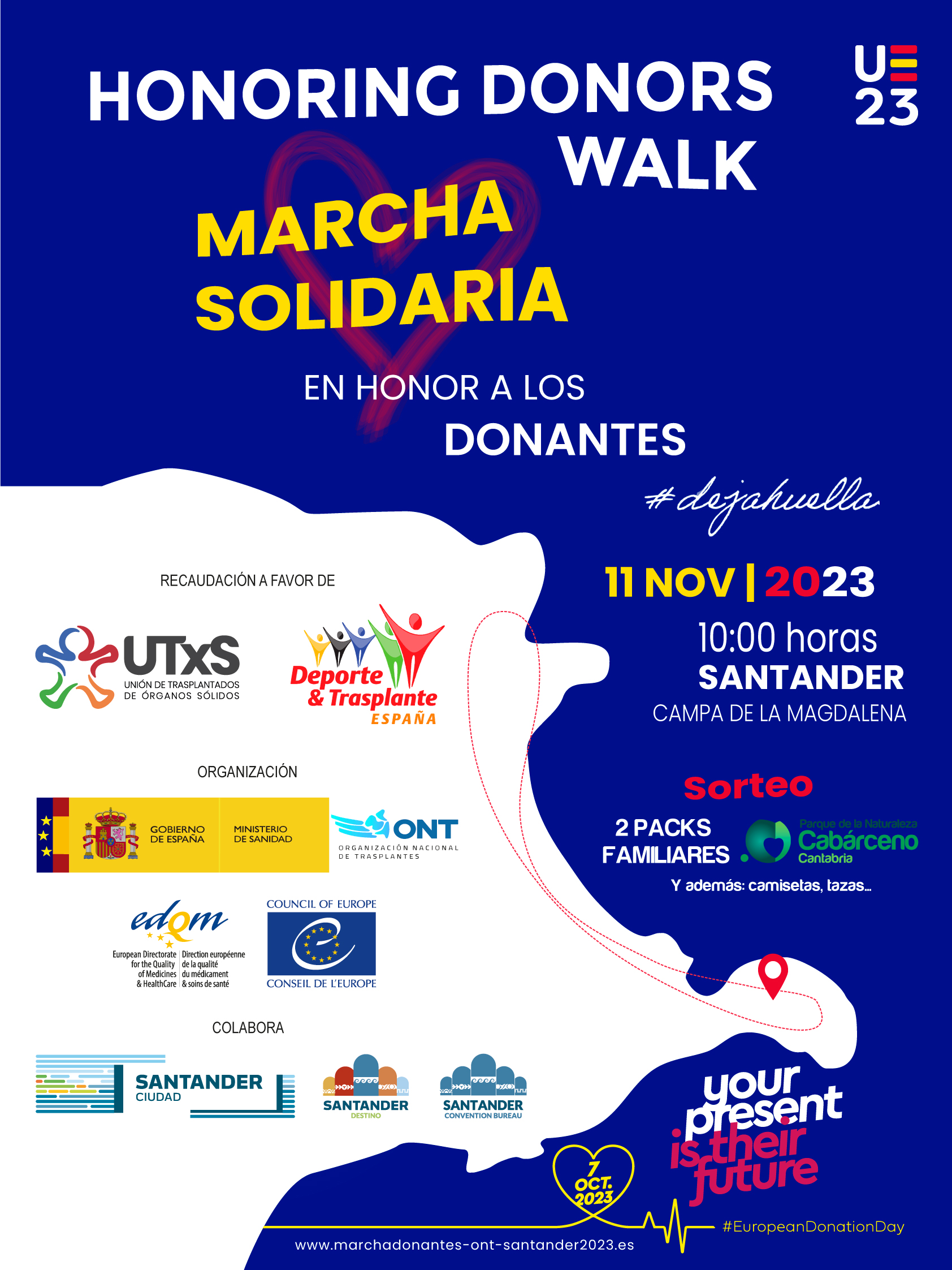 Esta marcha solidaria se celebra con motivo del Día Europeo del Donante (EDD), que este año fue el 7 de octubre. La Organización Nacional de Trasplantes , en el marco de la Presidencia Española del Consejo de la Unión Europea, coorganiza con el Consejo de Europa esta acción popular el próximo 11 de noviembre en Santander, una marcha para todas las edades cuya recaudación será íntegramente para la Unión de Trasplantados de Órganos Sólidos y para la Asociación Deporte y Trasplante España.